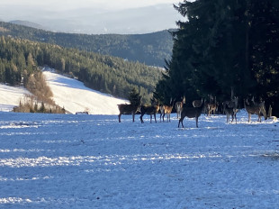December 28. Az utolsó túra idén. Bemelegítésképpen, hajnalban, még reggeli előtt toltam 10 kilométert a DélüDunántúli Kéktúrán. Majd irány Ausztria. A Wildwiesenre fel lehet autóval menni. Sokan fel is mentek. Én annyira nem akartam a csúcsig menni. Elvi okokból sem, meg különben is ki volt jegesedve az út. Megálltam lejjebb a havas útpadkán. Ebből később lettek is nehézségek. Na de most elindultunk a csúcs felé. Hamar oda is értünk. Én felmentem a kilátóra. Kati letnt maradt. Sokat azért nem veszített. A kilátás nem volt kiemelkedően szép, és meglehetősen hideg volt fent. Na, de most még a kirándulásnak viszonylag az elején voltunk - indultunk is tovább a Floisenkogel irányába.
