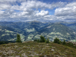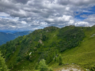 Autóval fel lehet menni az 1225 méter magasságban lévő Renate's Einkehr nevű panzióhoz. Innét indultam. Már innét fantasztikus látványt nyújtott a lent elterülő Millstätter See. A tó látványa az egész túrán végigkísért. Felfelé menet találkoztam tehenekkel, és egy túrázó bácsival is, aki elmondta, hogy mindenki olyan tempóval menjen, ahogy jól esik. A bácsi öreg volt, és lassú, gondolom, ezért gondolta, hogy megossza ezt a gondolatát. Azt is elmondta, hogy ő zenész - harmonikás - és kedvence csárdást harmonikázni. A Bodeneck csúcsán már senki nem mondott semmit, mert ott egyedül voltam. De csak 1-2 percig, mert indultam tovább a következő célhoz. Ami a Türndl nevű hegycsúcs.